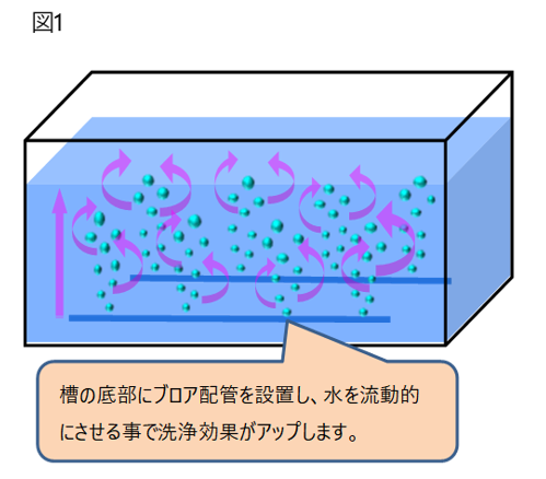 これらの残留を予防する対策として、各水洗槽の浸漬時間調整・水量調整を行う、水洗槽にブロアを設置し、エアーの浮力で処理液を流動させ水洗効力を上げる等が効果的です。